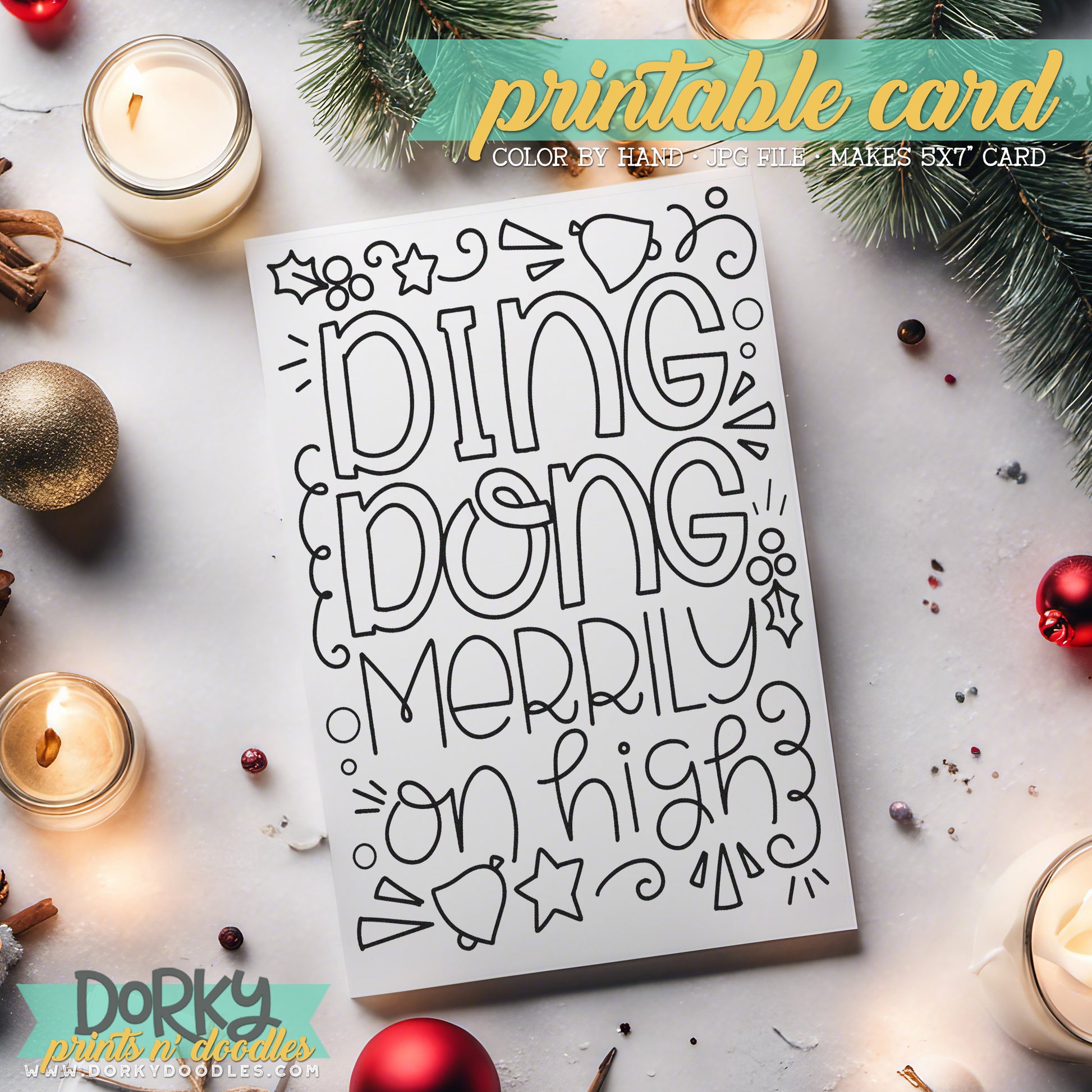 Merrily on High - Hand Drawn Christmas Coloring Cards - Printable Holiday Greetings - Instant Download