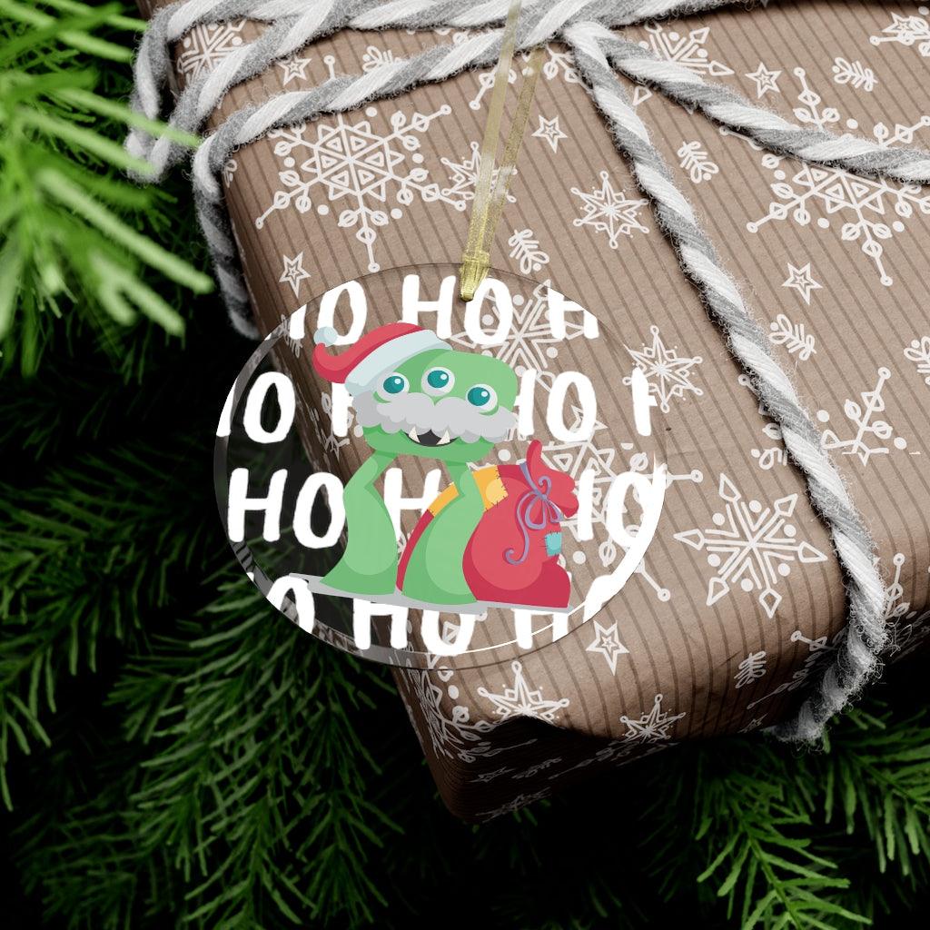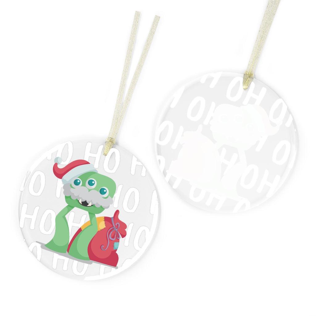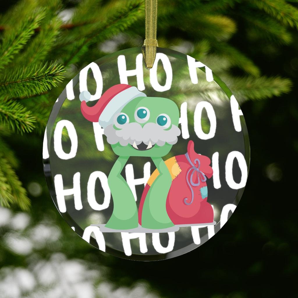 This cute Santa monster glass ornament will add a touch of whimsy to your Christmas! It comes with a gold-colored ribbon so you can hang it anywhere around the home. It will look as much in place on a wall or by a window as it will in a Christmas tree.