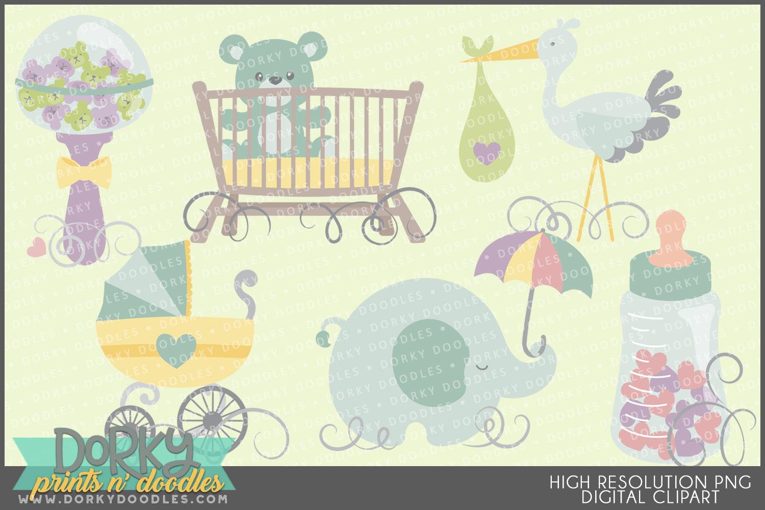 These cute new baby images look fabulous in scrapbooks, planners, party invitations, cookies, stickers, and decor! You will get 6 Digital Clip Art images in high resolution PNG format (they come as a ZIP file that you can download instantly once payment has cleared).