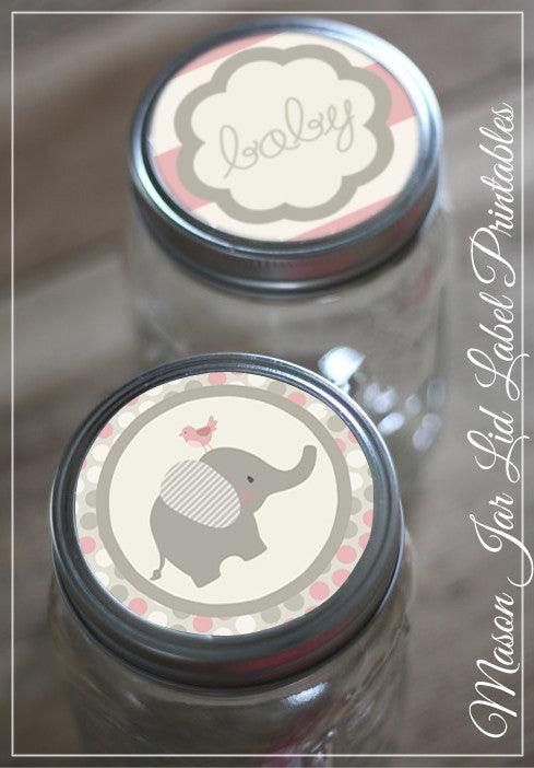 Pink Elephant Mason Jar Lids Baby Shower Printables