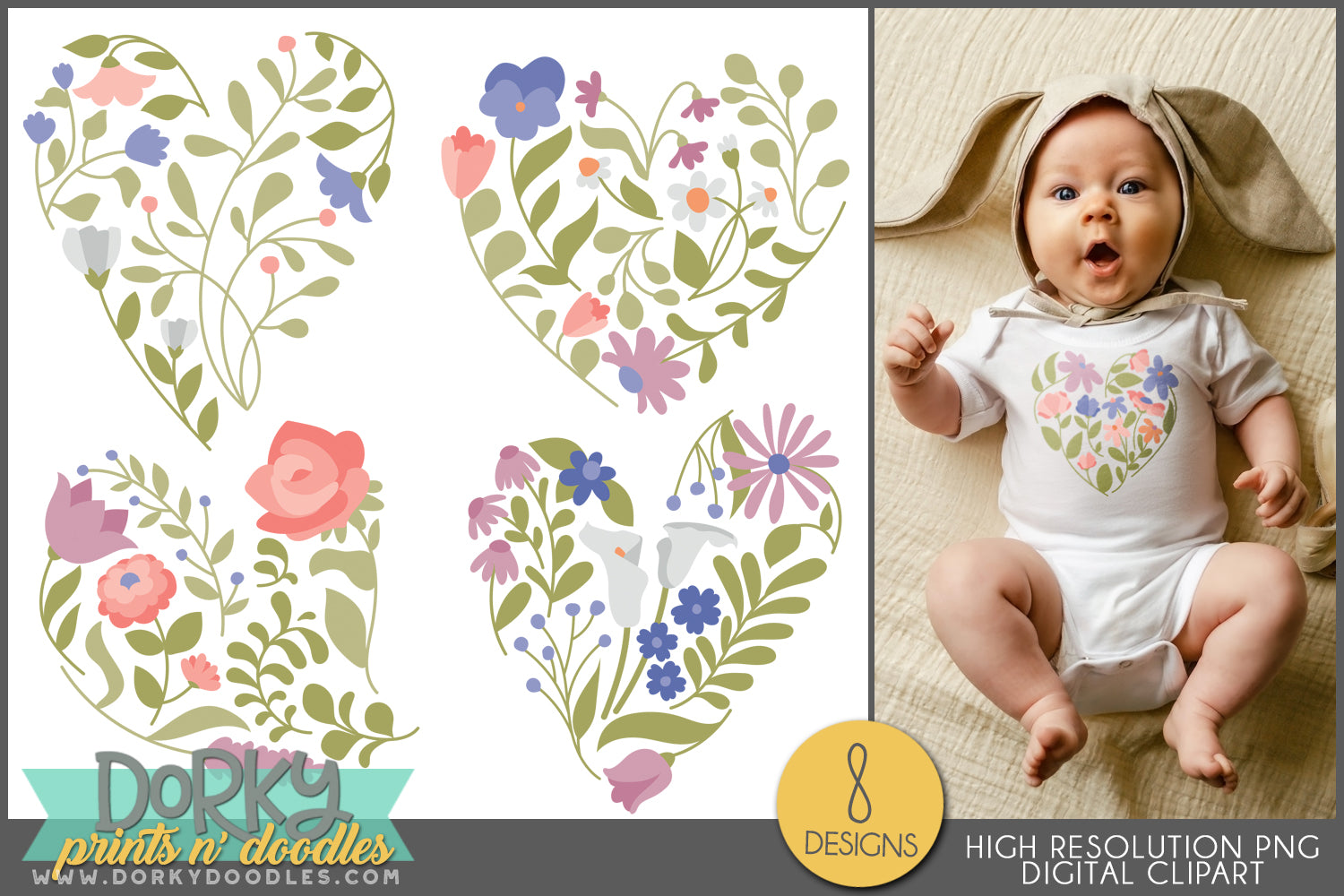 These pretty heart shaped floral designs are perfect for your stickers, school projects, sublimation designs, sugar cookies, home decor, fabric, and more! Our high quality digital art makes any project look whimsical and fun for kids and adults!