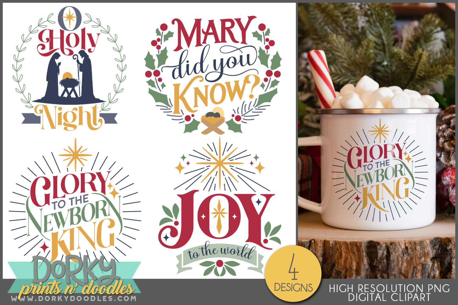 Add a whimsical touch to your projects with our pretty and uplifting Nativity saying clipart! Perfect for: