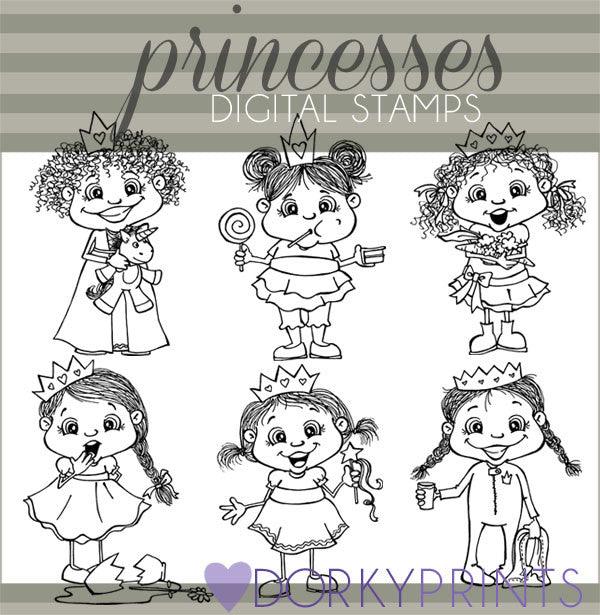 These cute princesses look fabulous in scrapbooks, party invitations, and holiday decor! You will get 6 Digital Blackline Clip Art images in high resolution PNG format (they come as a ZIP file that you can download instantly once payment has cleared).
