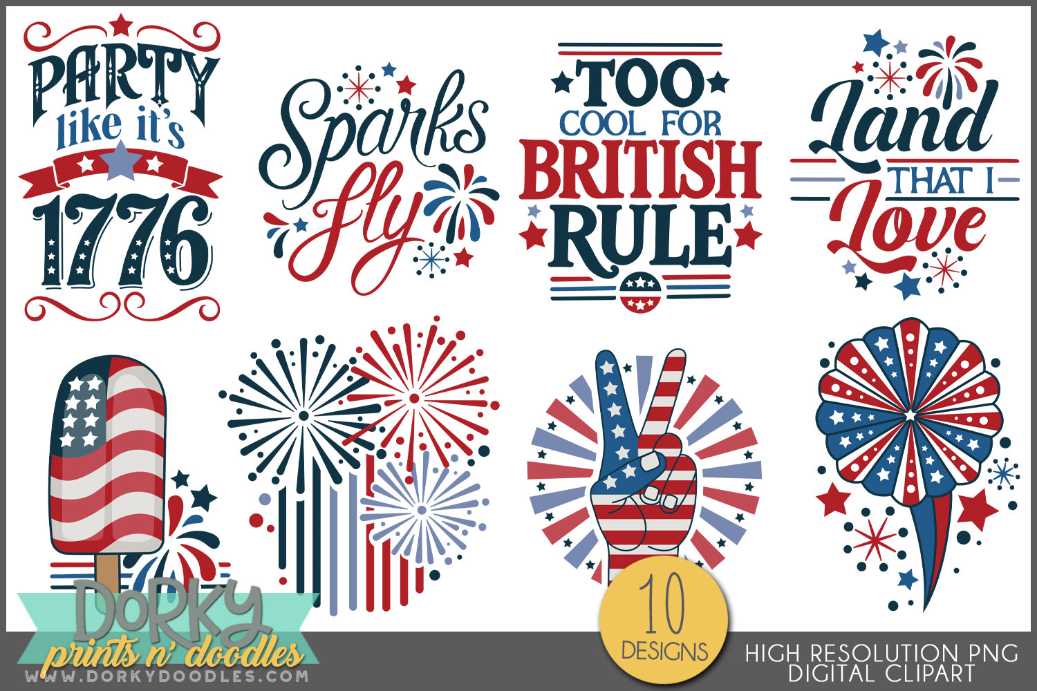 These fun and patriotic 4th of July illustrations are perfect for your stickers, school projects, sublimation designs, sugar cookies, home decor, fabric, and more! Our high quality digital art makes any project look whimsical and fun for kids and adults!