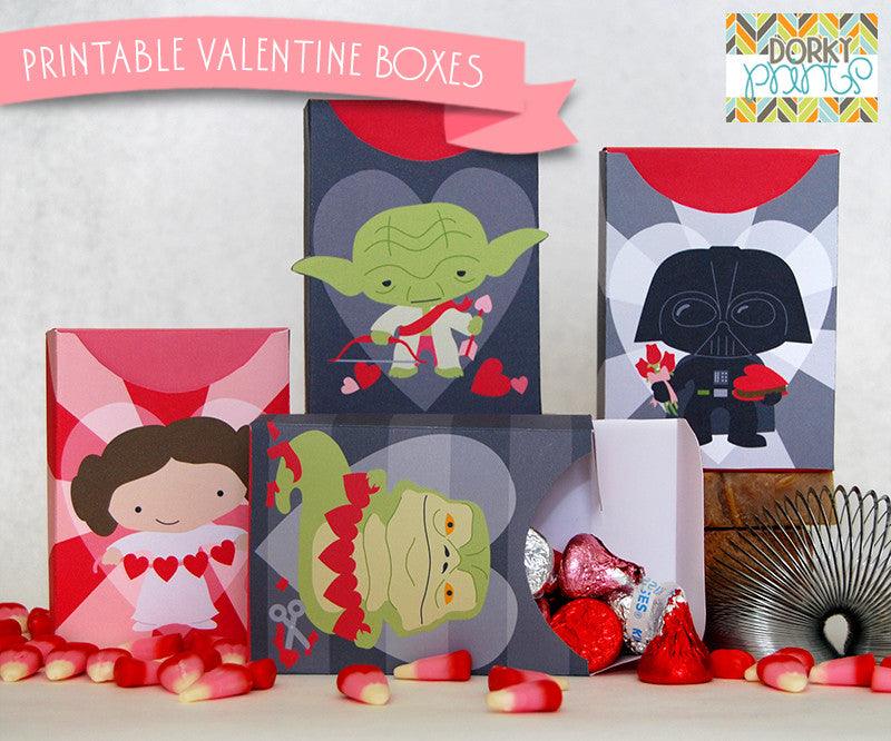 These printable Valentine boxes are sure to be a huge hit on the day of love! You will receive one PDF file containing 4 printable Star Heroes boxes (and instructions).