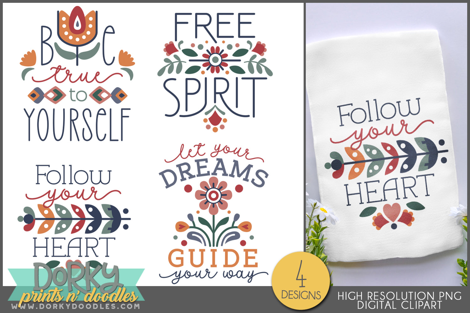 Add a whimsical touch to your projects with our Folkart Style Inspirational Sayings Clipart! Perfect for: