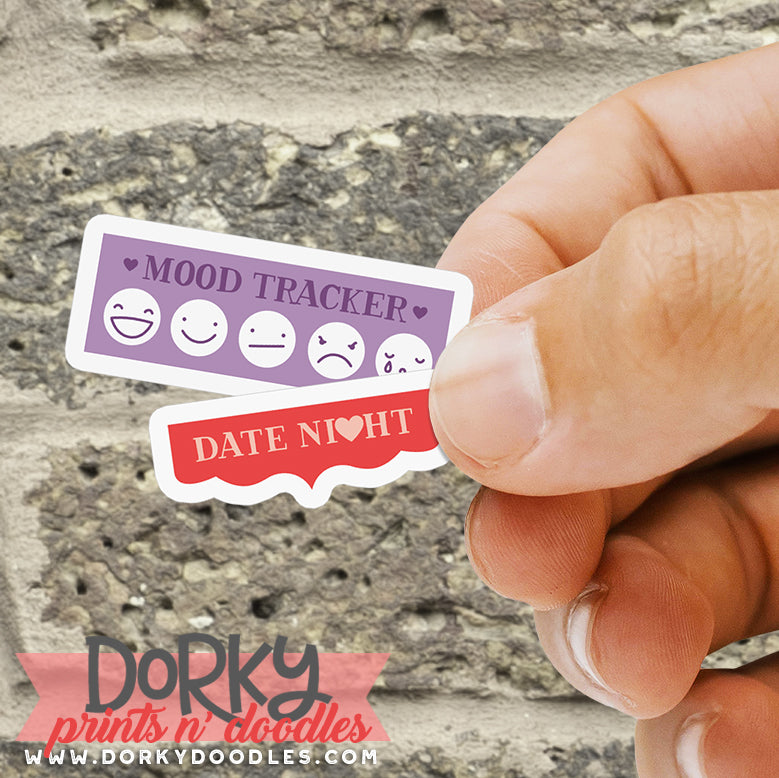 These adorable and whimsical Valentine planner header stickers by Dorky Doodles are the perfect addition to your stationery collection. Printed on high-quality adhesive vinyl, these stickers are not only great for planners but also versatile enough to cover other stickers or decorate various surfaces without leaving any bubbles.
