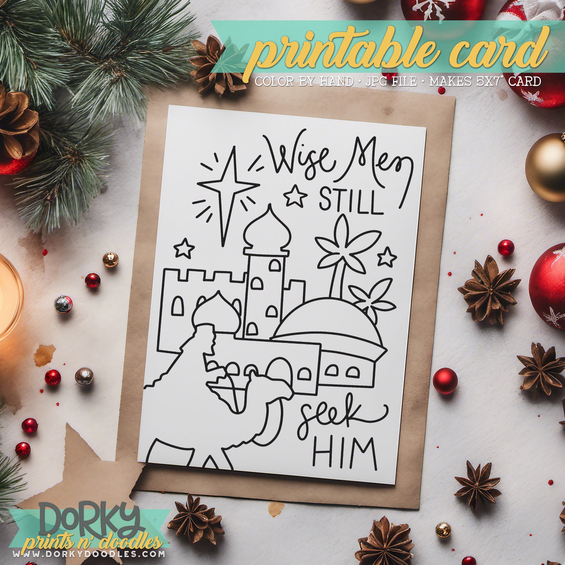 Wise Men - Hand Drawn Christmas Coloring Cards - Printable Holiday Greetings - Instant Download