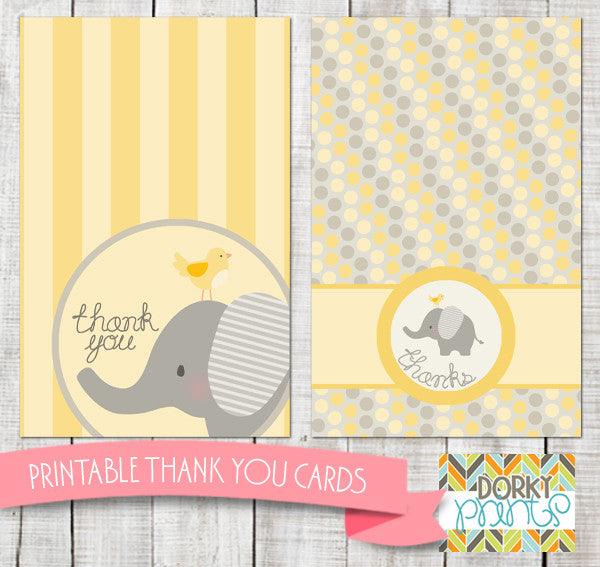 Yellow Elephant Thank You Cards Baby Shower Printables